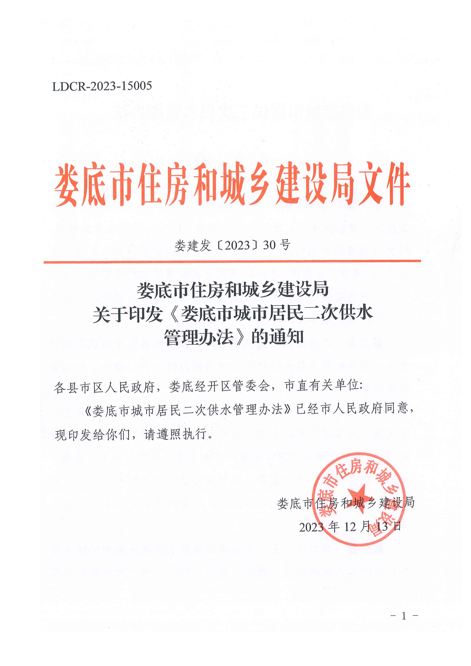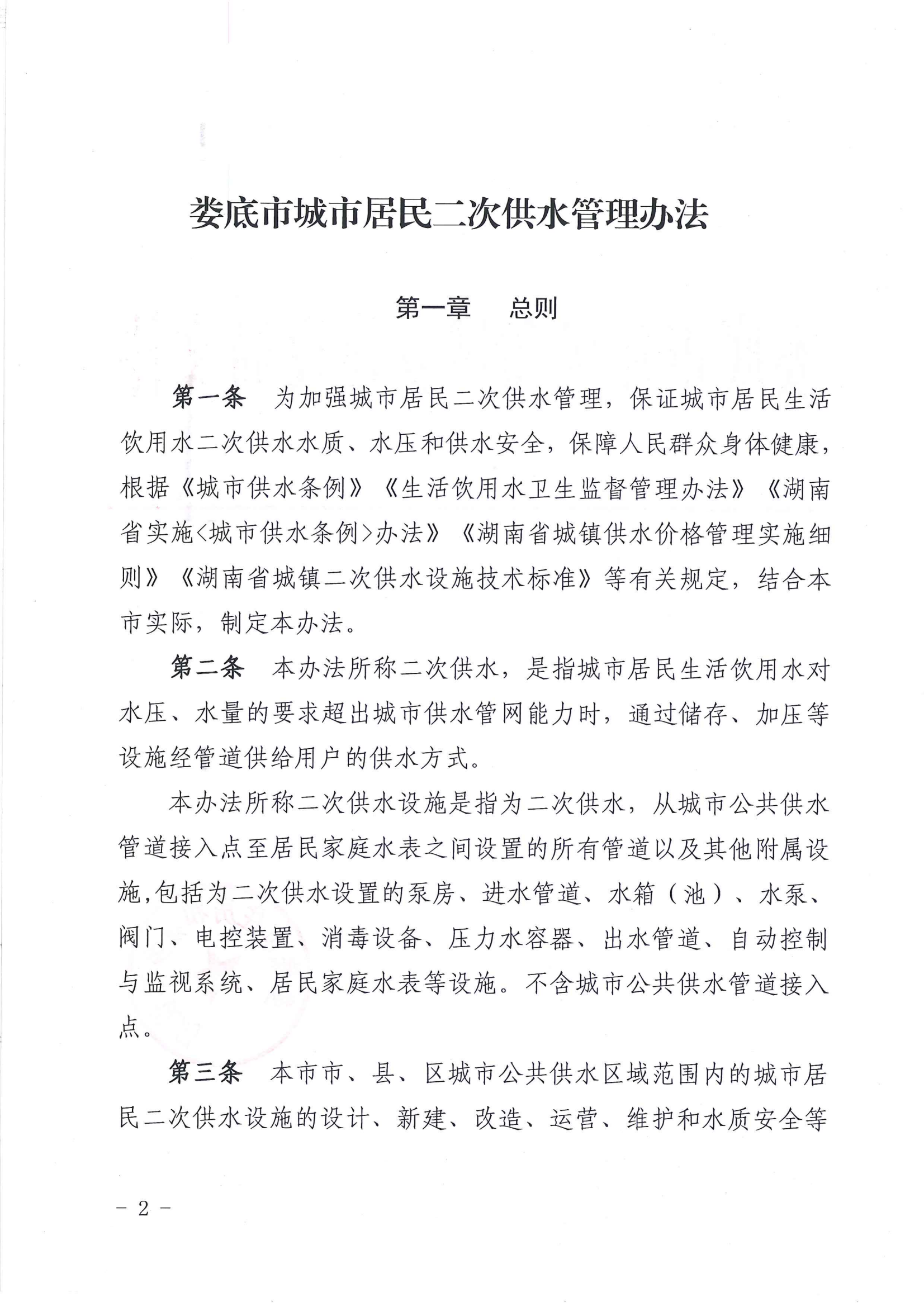 娄底市城市居民二次供水管理办法 -尊龙凯时人生就是搏